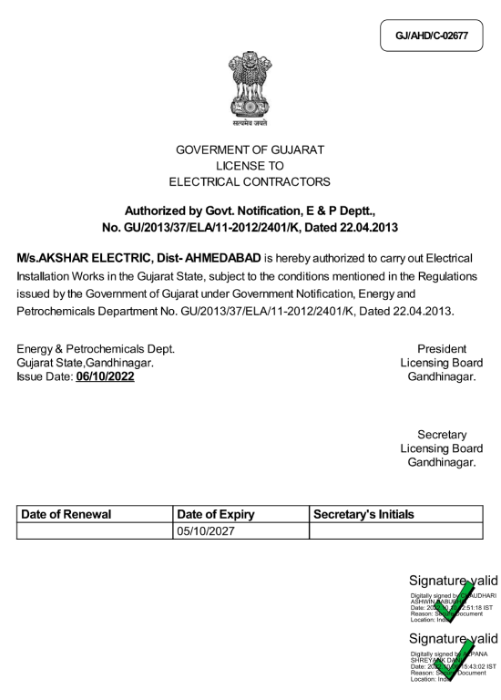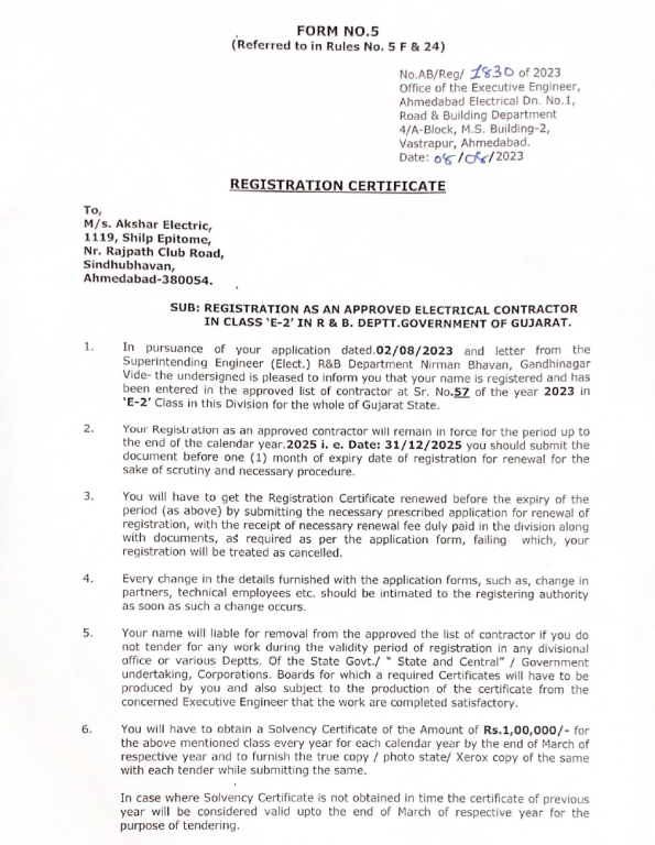 Electrical Contractor Certificate